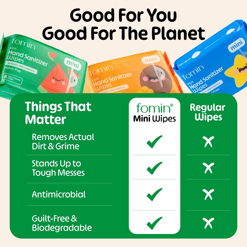 Hypoallergenic and pH-balanced, these antibacterial wet wipes are perfect not only for hands but also for faces and other messes, keeping your child fresh and clean anytime, anywhere. Fomin Wipes are the mess-fighting, eco-friendly companion every parent needs in their bag.