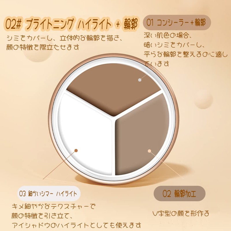 - (Shadow and Highlight 3 Color Set) The soft shade is a natural gray brown tone that can create 3D contours. The Pearl Highlights are a brilliant and sparkling champagne color that naturally conforms to the skin and gives it a lustrous feel. The matte highlight is a beige tone that fills the dimples and brightens the inner contours to make your face look more young