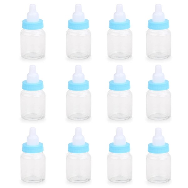FOMIYES 12Pcs Mini Shower Bottles, Feeding Bottle Shape Candy Box, Transparent Nursing Bottle for Shower Party Favors (Blue)