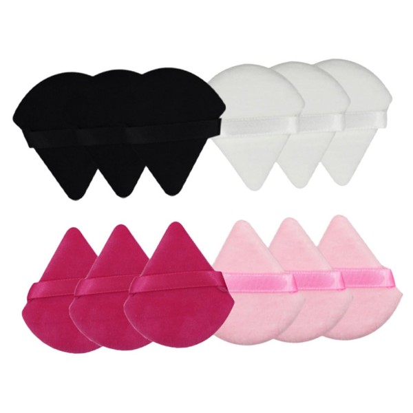 FOMIYES 12pcs Triangular Makeup Sponges for Wet Dry Use Skin-friendly Cosmetic Puff for Foundation Blush Travel-friendly Design Black White Pink Rose