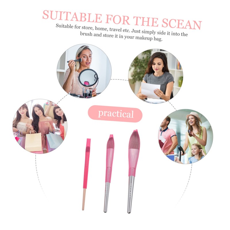 Covers for Makeup Expandable and work well with different sizes of like powder , blush , shadow , etc.Expandable Mesh Cover Just simply side it into the brush and store it in your makeup bag.Mesh Cover After cleaning your they would easily and look ruined, but these mesh covers can help your keep the shape