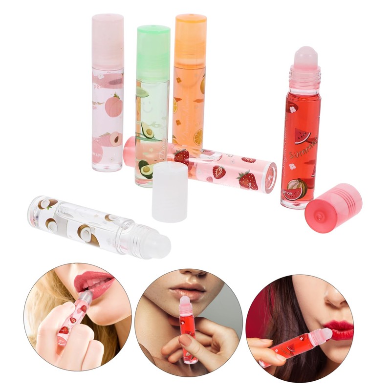 FOMIYES 1set Fruit Lip Cherry Lip Balms Lip Gloss Tubes Fruit Gloss Fruit Roller Lip Gloss Mini Lip Gloss for Party Bag Sticky Tint Brown Lip Gloss Transparent Lip Pomade Plastic 6pcs