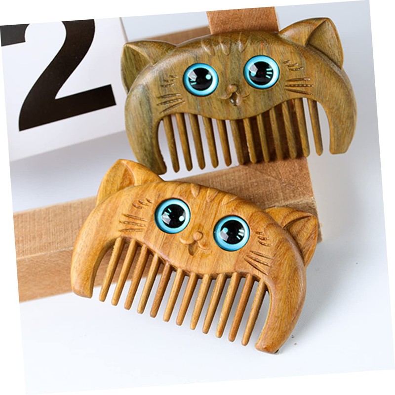 FOMIYES 2pcs Green Sandalwood Combs Fine Tooth Hair Combs for Women Small Cat Design Portable Lightweight