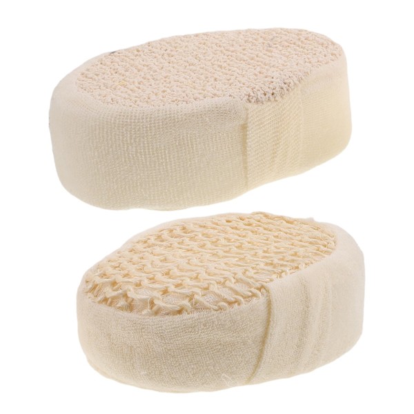 FOMIYES 2pcs Natural Sisal Exfoliating Bath Sponge Oval Shower Loofah Pads wi...