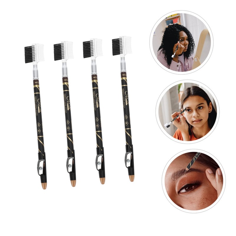 FOMIYES 4pcs Eyebrow Makeup Pencils Sharpener and Dual-ended Brush for Women Grooming and Shaping and Smooth Application for Skin Types