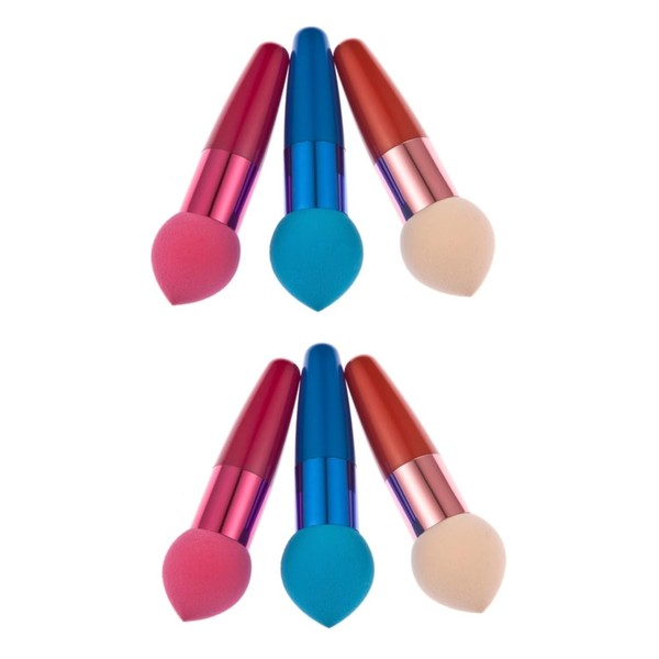 6 * Water Droplet Shaped Women Cosmetic Foundation Concealer Sponge Lollipop Brush (Red+Blue+Skin)