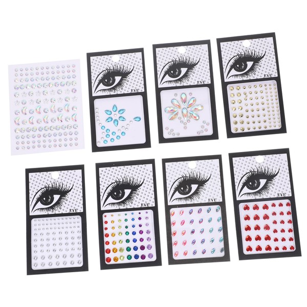 FOMIYES 8sheets Face Gems Stickers for Festival Makeup Rhinestone Jewels for Eyes Body and Nails Variety of Shapes for Party Decoration Eye-catching and Easy to Apply