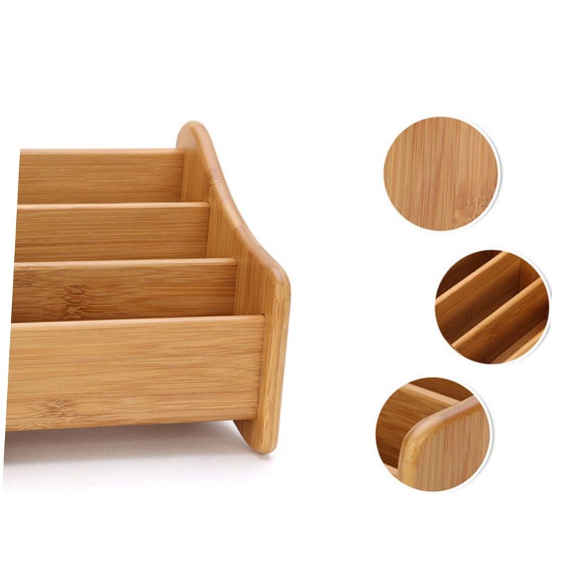 storage boxes Keep your desk tidy.organizer Features 3 storage compartments.holder for table It can be used in the living room for storing snacks, remote control, sundries and so on on the tabletop, also can be used in the bathroom for cosmetics storage. The multi-layer design makes it easy to store different sizes and types of things. This bamboo desk organizer is made of , safe and