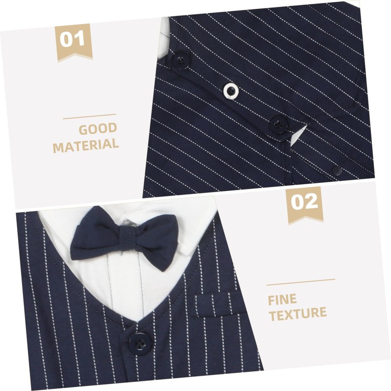 FOMIYES Boy Short Sleeve Romper: Baby Clothes Newborn Summer Gentleman Tuxedo Jumpsuit One Piece with Bow Tie for Wedding Holiday 59 Cm