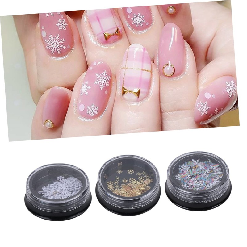 FOMIYES Nail Art Kit 3 Sets Christmas Snowflake Nail Art Stickers Sequins for Home Party Decorations