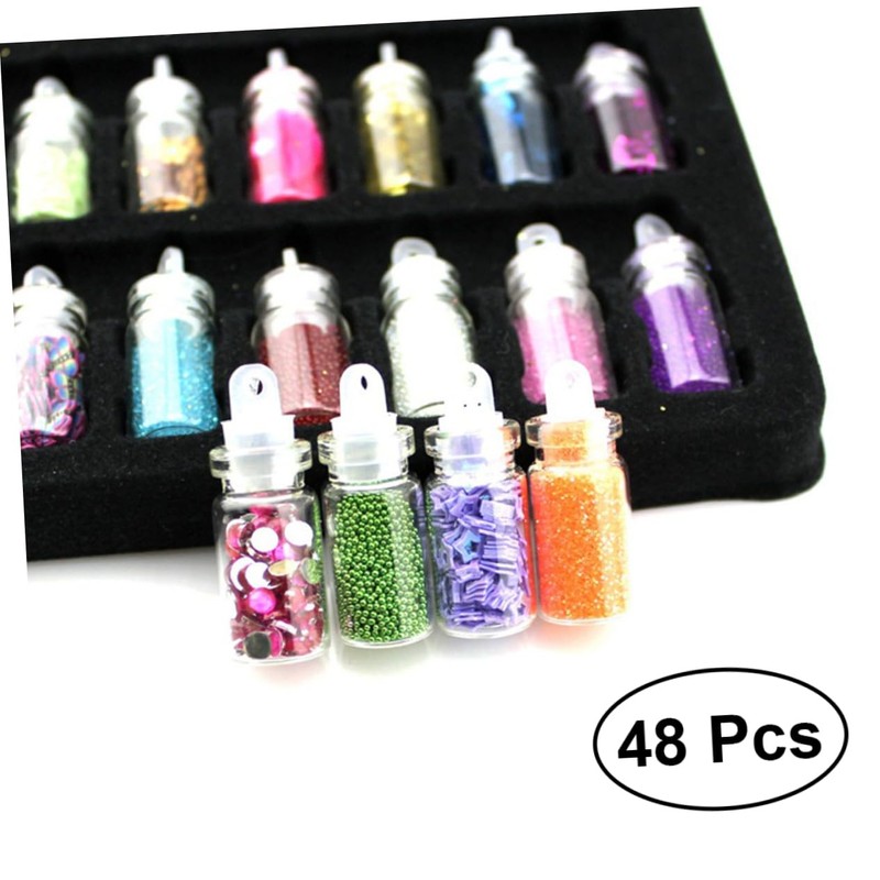 FOMIYES Nail Decoration Set 48 Patterns DIY Nail Art Tools Bottom and Flat Drill Fairy Pearl Sparkling