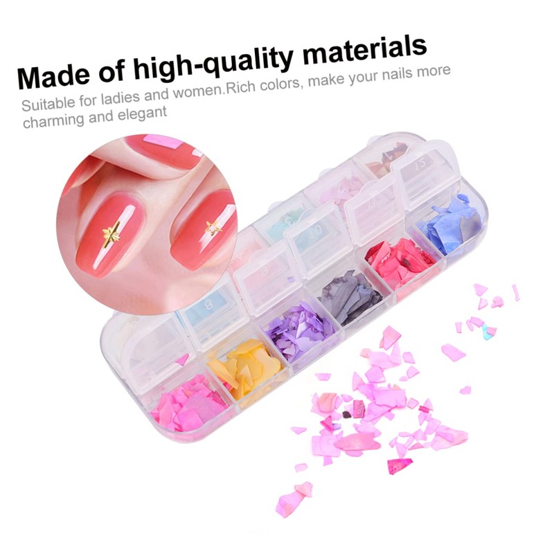 Nail Accessories It will bring much to you.Nail Sequin Decals This item is a well-made natural shell nail sequins which can help you create unique and creative nail art and allow you to share fun with your friends and family in holiday.Manicure Decals Suitable for Christmas parties, holiday event, etc