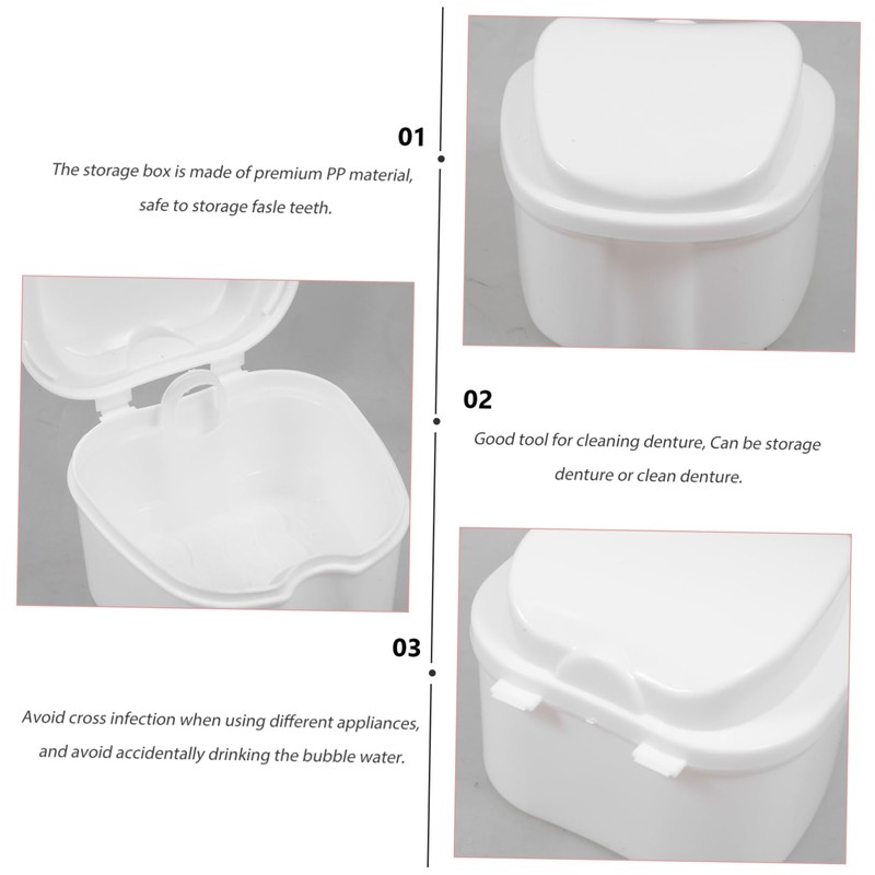 • Protective cover-- the storage box is made of premium pp material, durable and safe to storage fasle teeth, bath case.