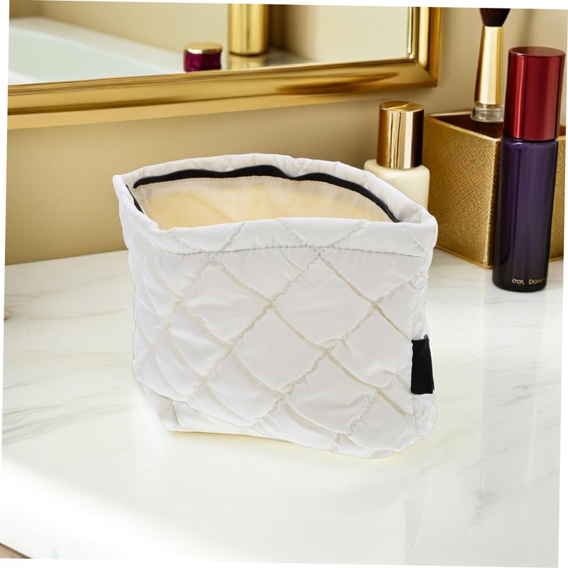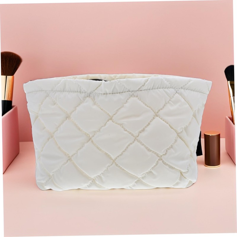 FOMIYES Quilted Portable Makeup Bag Small Cosmetic Organizer Pouch with Zipper Lightweight Travel Toiletry and Skincare Storage Compact Handheld Design for Purse and Daily Use