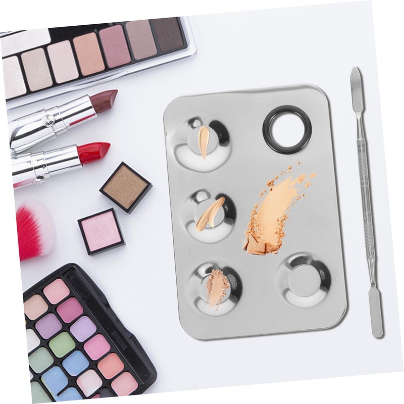 FOMIYES Set of Makeup Mixing Tray Spatula Stainless Steel Palette for Foundation Pigments Easy Cleaning Portable