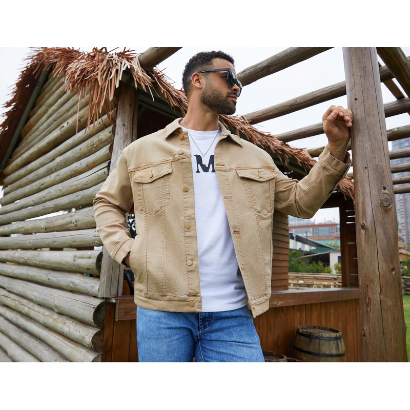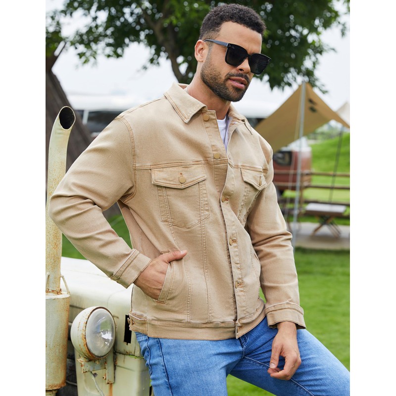 fon Denim Jackets for Men Trucker Jean Jacket Unlined Coats Spring Fall Outfits(Khaki,M)