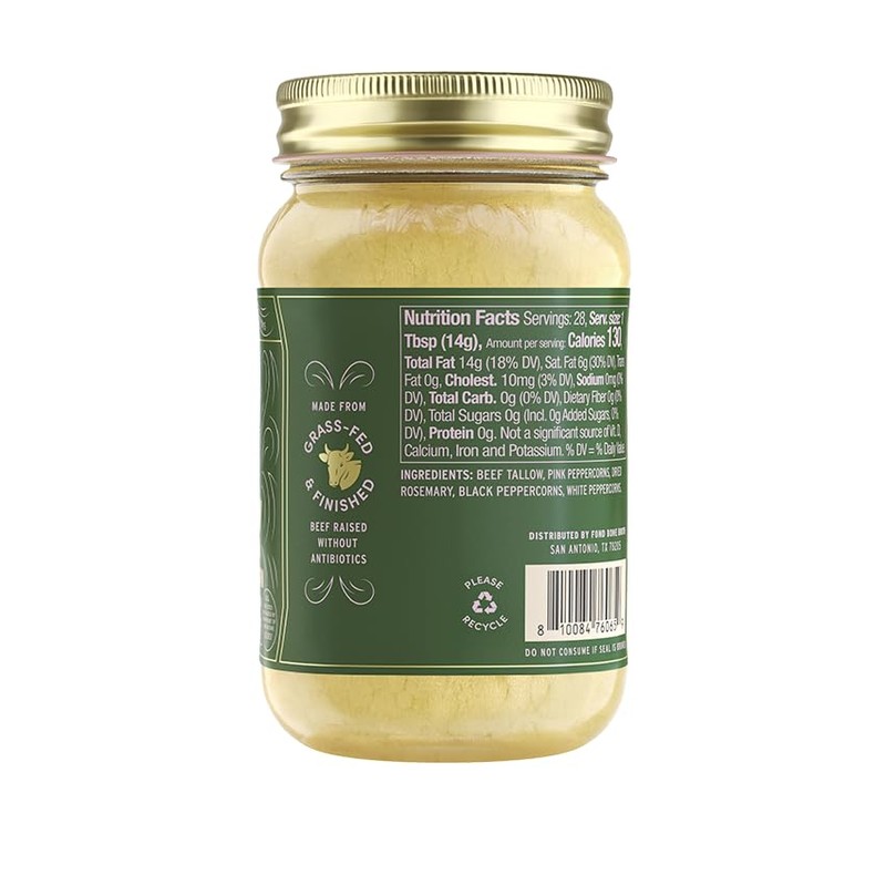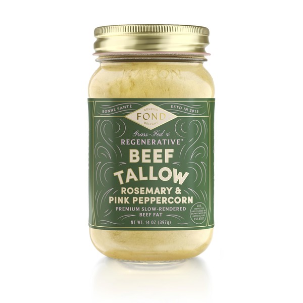 FOND Regenerative Grass-fed Beef Tallow (14 Ounce (Pack of 1), Rosemary & Pink Peppercorn)
