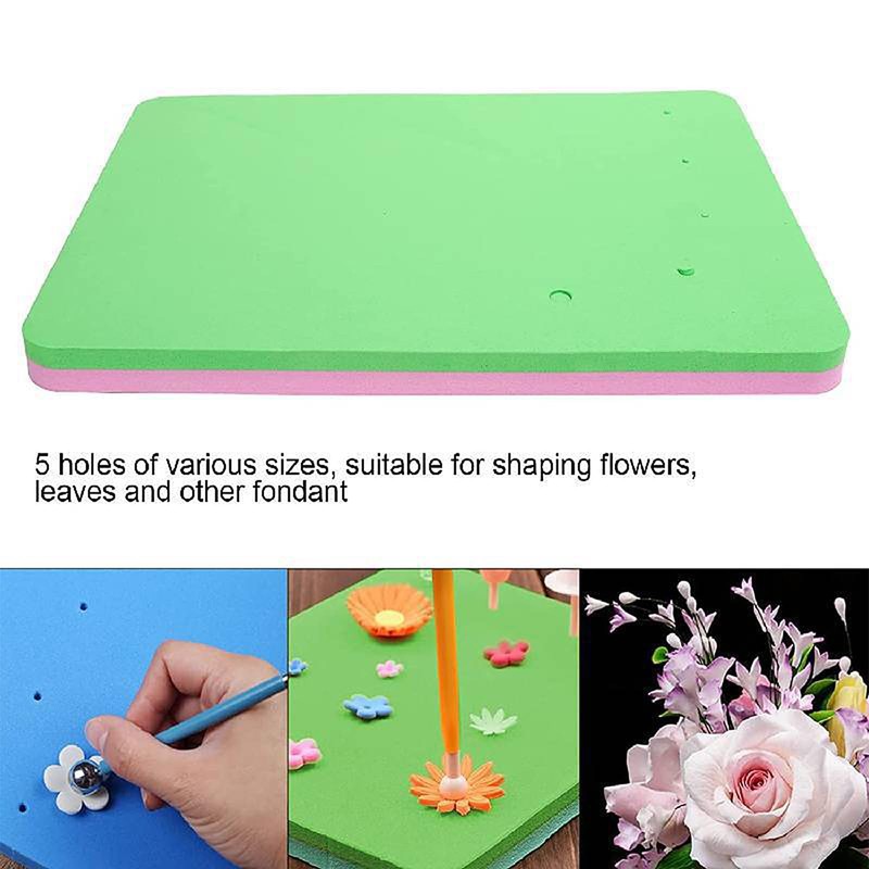 Fondant Foam Pad with 5 Holes - Shaping and Sugarcraft Modelling Tool for Cakes - Sugar Flower Sponge Mat 9.6x7.3x0.6 in