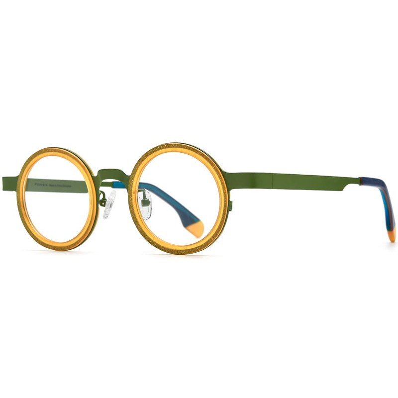 FONEX Acetate Titanium Glasses Frame Women Round Eyeglasses Vintage Eyewear F85816 (F85816 Green)