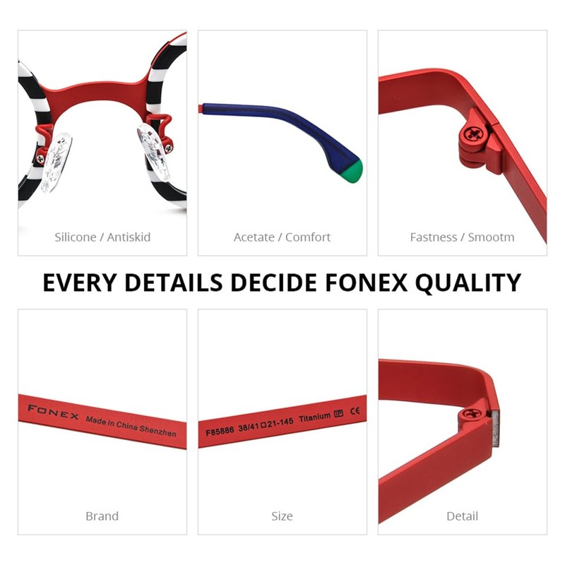 FONEX Acetate Titanium Glasses Frame Women Round Eyeglasses Vintage Eyewear F85816 (F85886 Red)