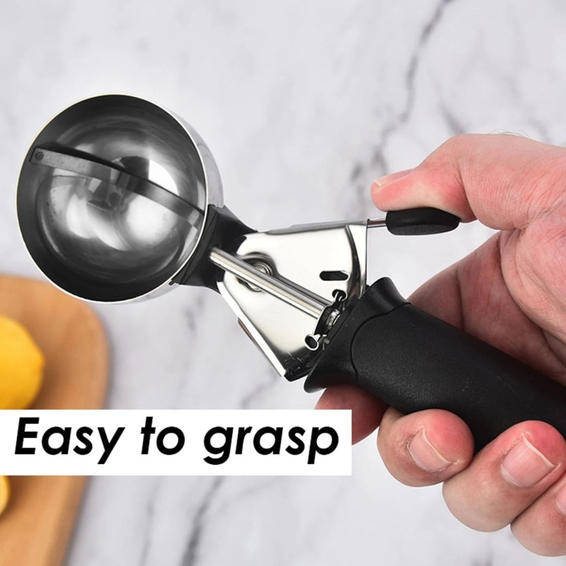 -With thoughtfully designed squeeze handles and ergonomic trigger system, We would use the ice cream scoops easily and gently squeeze to release.