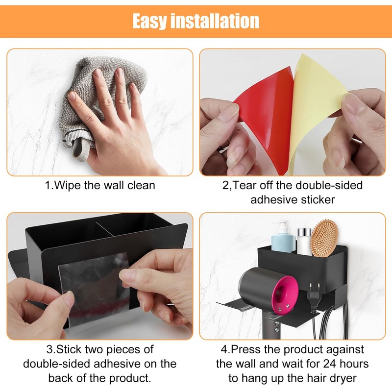 3. Das offene Design sorgt für eine effektive Wasserableitung, verhindert Wasseransammlungen und Feuchtigkeit, hält den Föhnhalter trocken und sauber und erleichtert die tägliche Reinigung.