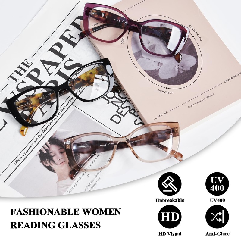 - STAY STYLISH - Crafted for women, these cat-eye bifocal reading glasses blend timeless elegance with minimalist design. The cat eye-shaped frames add a touch of feminine charm and sophistication, making them a versatile choice for everyday wear. Meticulously designed for comfort, they offer a lightweight, flattering fit that ensures all-day ease.