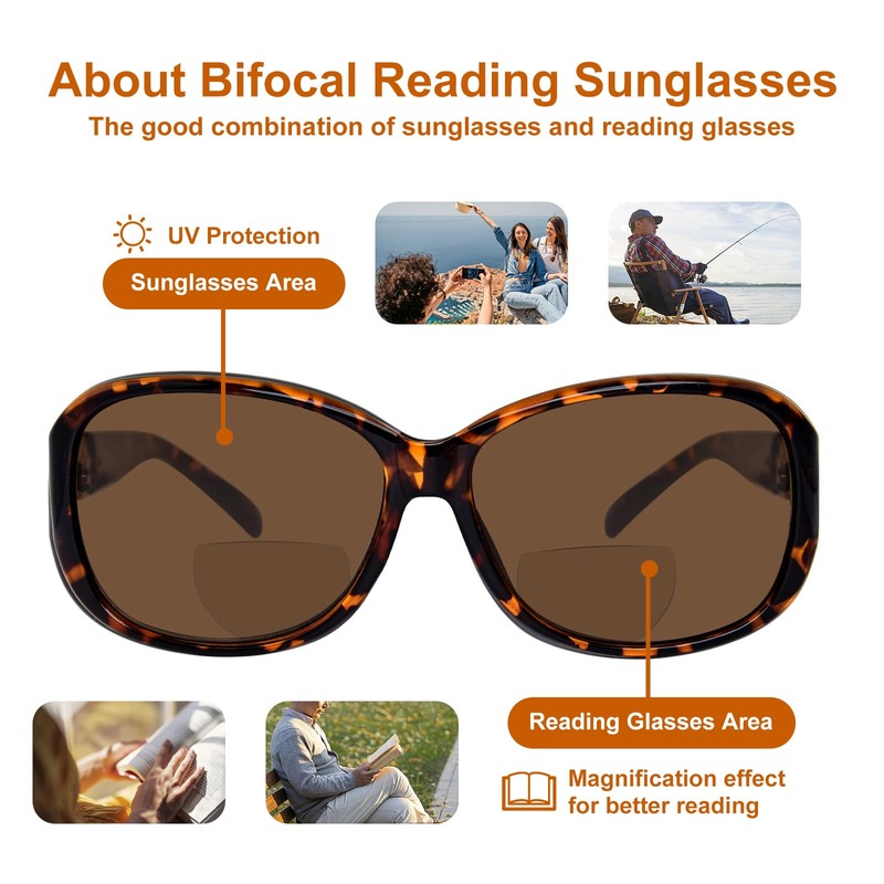 - OPTIMUM VISION PERFORMANCE - The bifocal sunglasses lenses not only provide clear vision for reading but also offer 99% UVA/UVB protection. Greatly protects your eyes from long-term UV radiation, helping reduce fatigue or damage caused by strong light stimulation, assuring your eyes safety under the sun.