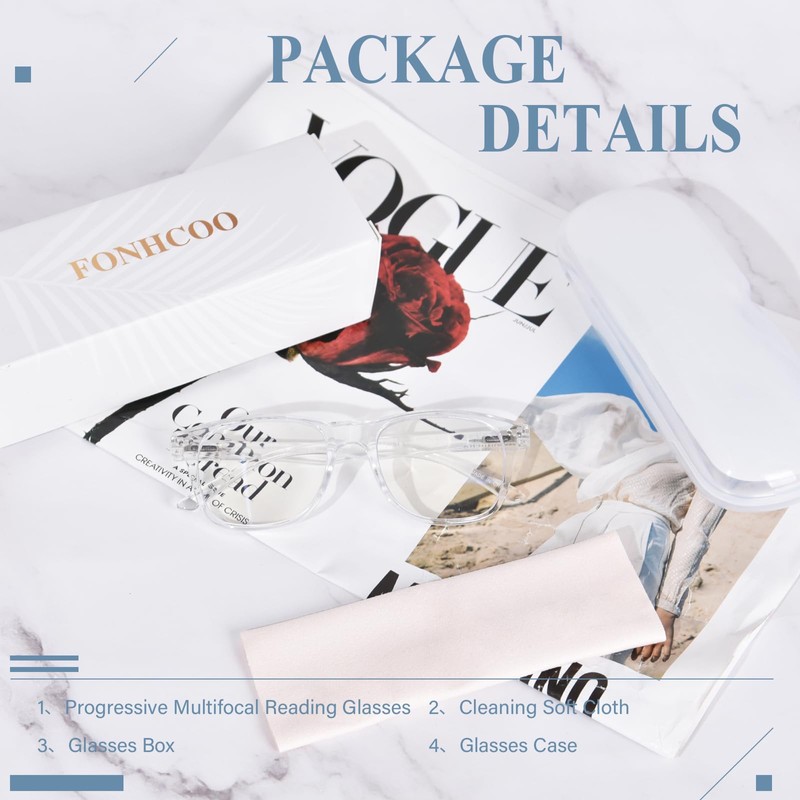 • ▶MULTIFOCAL READERS- FONHCOO progressive reading glasses offer superior visual clarity and comfort, enabling seamless transitions between tasks like working on a computer or reading a book. Say goodbye to constantly taking on and off your glasses - enjoy a smooth experience while engaging in daily activities and communication. (Wearing multifocal reading glasses for the first time may require 7-14 days to get used to.)