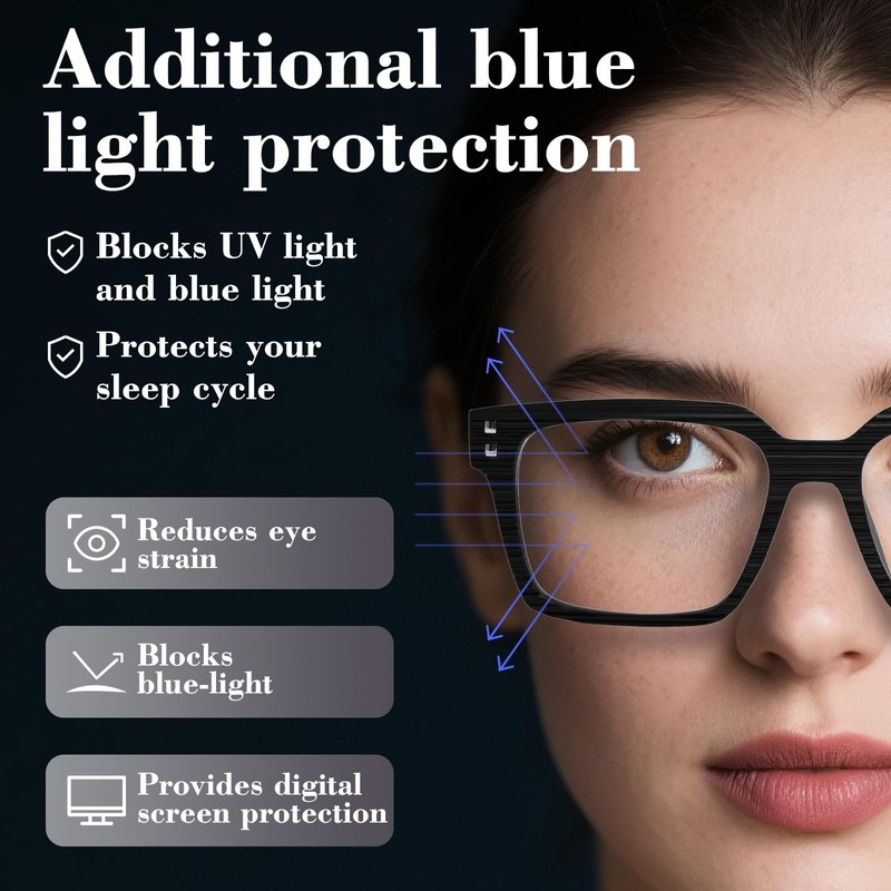 - BLUE LIGHT BLOCKING - Blue light reading glasses effectively block harmful blue light from digital devices, helping reduce headaches and alleviate eye strain. They protect you from discomfort caused by prolonged screen exposure.