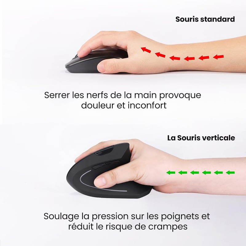 Unsere ergonomischen Mäuse sind so konzipiert, dass Sie sich beim Arbeiten oder Spielen wohl fühlen. Eine ergonomische Maus hält Sie nicht nur bequem, sondern hilft auch, Stress und Schmerzen zu lindern, die durch eine falsche Haltung des Handgelenks verursacht werden. Dies kann helfen, Probleme wie Karpaltunnelsyndrom, Arthritis, Handgelenkschmerzen und Daumenschmerzen vorzubeugen.