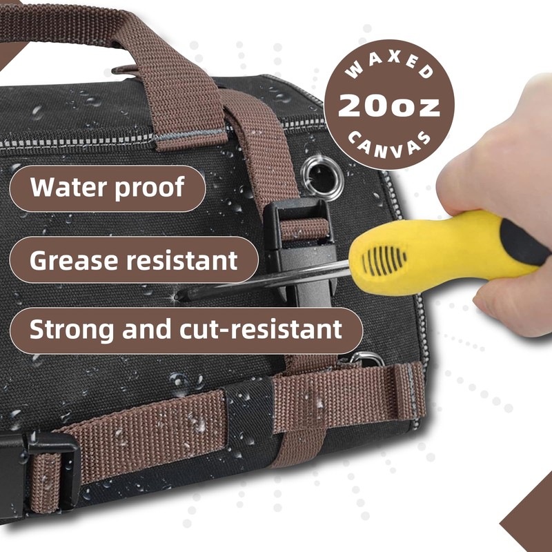 - Waterproof Design = The waterproof construction of this tool storage bag keeps your essential tools safe and dry, making it ideal for outdoor jobs and unpredictable weather conditions.