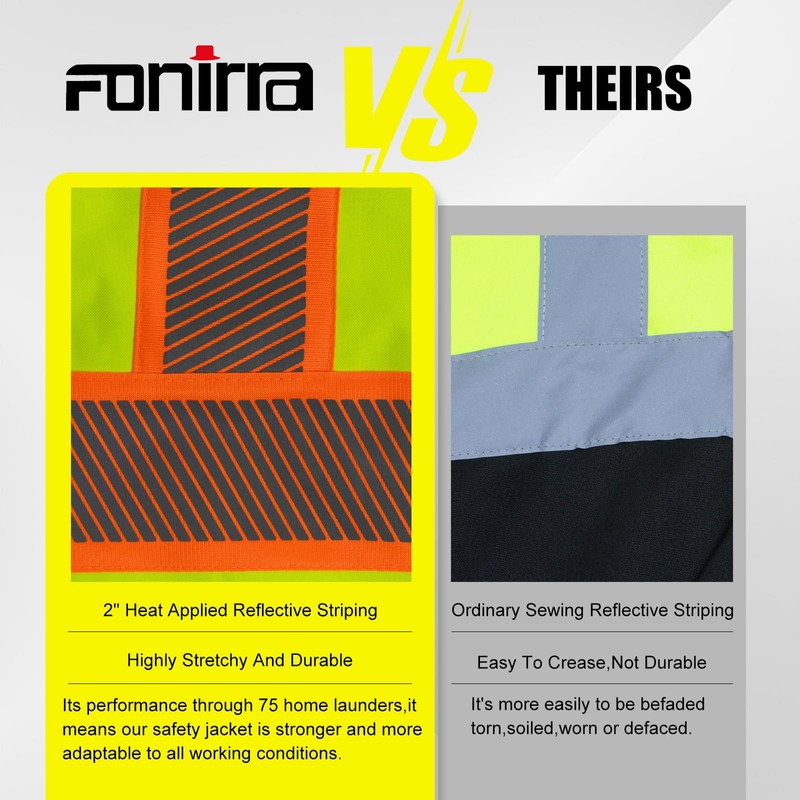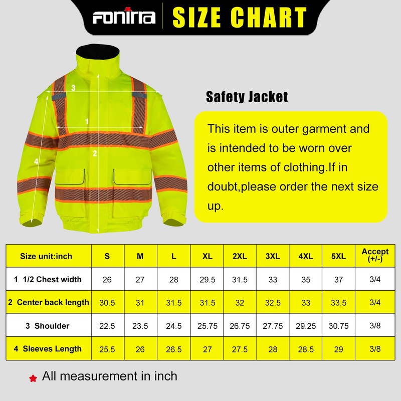- 【Material】FONIRRA premium high visibility bomber jacket is made of 300D oxford and PU coating to highly durable waterproof and windproof.Inner is made of 240gsm polar fleece and 100gsm quilted padding, provides sufficient warmth for working in frigid conditions.