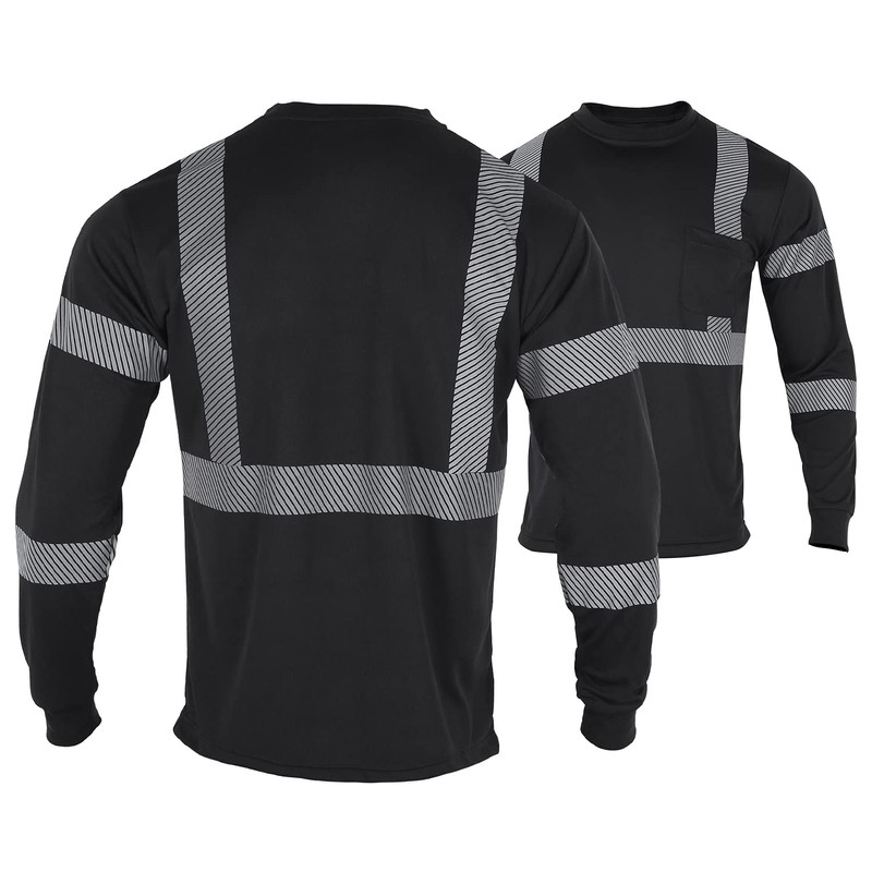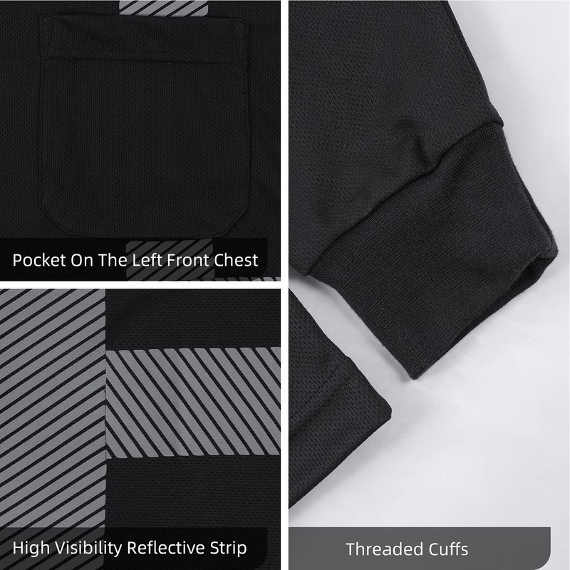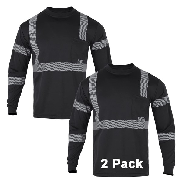 FONIRRA High Visibility Shirts for Men Reflective 2 Pack ANSI Class 2 Hi Vis Work Safety Shirts Long Sleeve (2 Black)