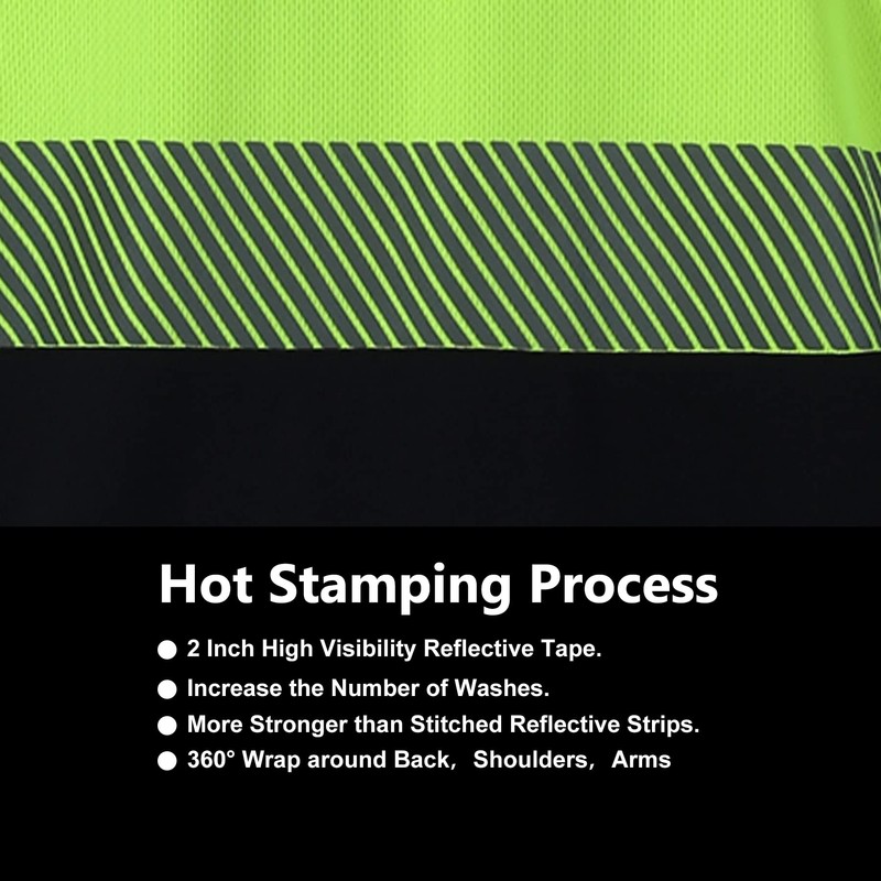- Hot Printing Process:Our high visibility shirts for men use 2-inch hot printing reflective strip, more durable than sewing, increase the number of washing. Twill design, more style at the same time the body will not feel tight