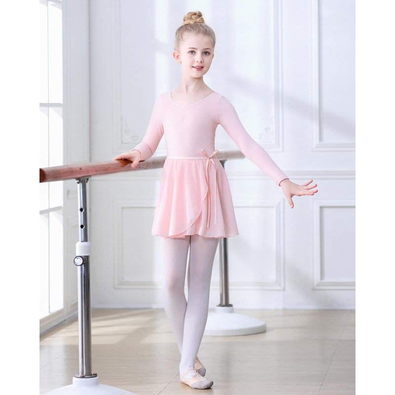 FONLAM Girls' ballet dress, ballet leotard, long sleeve dance dress, leotard, dance body, ballet skirt, children's ballet suit, cotton, pink