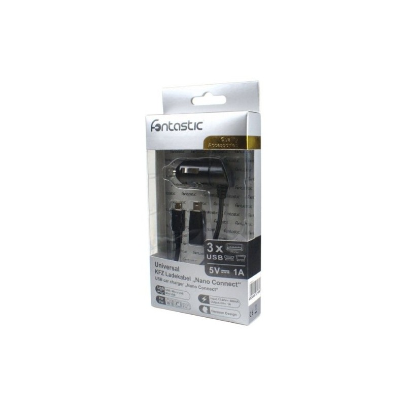 Fontastic LAUNAC1-7 In-Car Charger Nano Connect Micro/USB 1A Black Includes Mini USB Adapter
