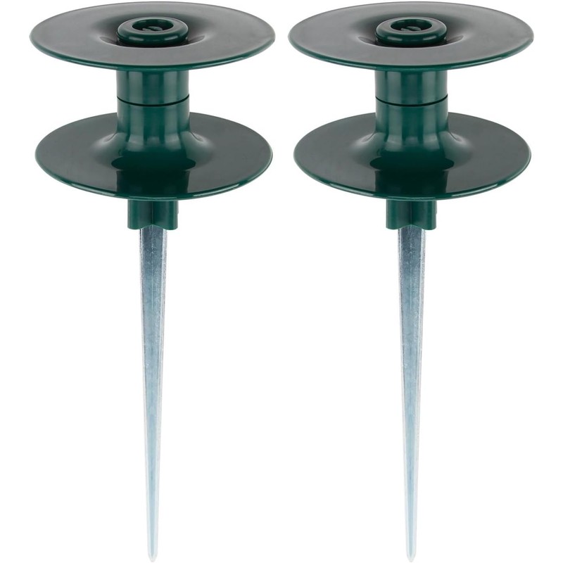 FONTOI 10 Inch Hose Guide Stakes, Durable Rust Free Zink Hose Guides for Garden, Heavy Duty Dark Green Spin Top, Garden Hose Guide Stakes Metal for Plant Protection Greenhouse, Patio Lawn, 2PCS