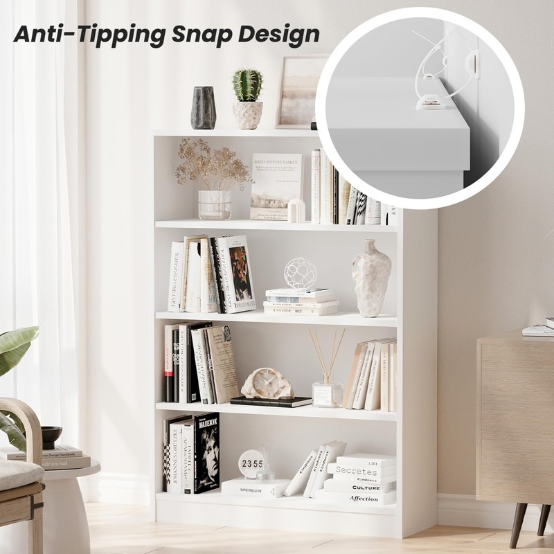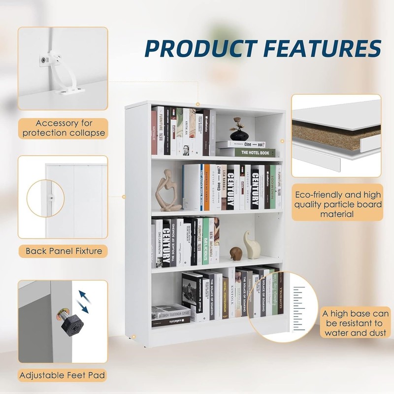 FONTOI Bookshelf, Open Modern Bookshelf, 4 Shelf Bookcase with Freestanding Display Storage, Wooden Book Shelf for Bedroom, Living Room, Dinning Room, Office, 48 Inch, White