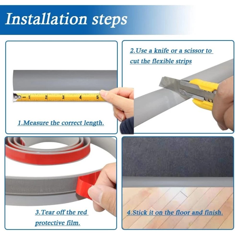 - 【Easy to Use】The carpet edge trim is quick and simple to be installed. Firstly, measure the required length in advance and then freely cut to your custom length. Secondly, tear off the red backing tape and place it to a suitable position. Finally, stick firmly on the floor and embed the carpet in the side of notch.