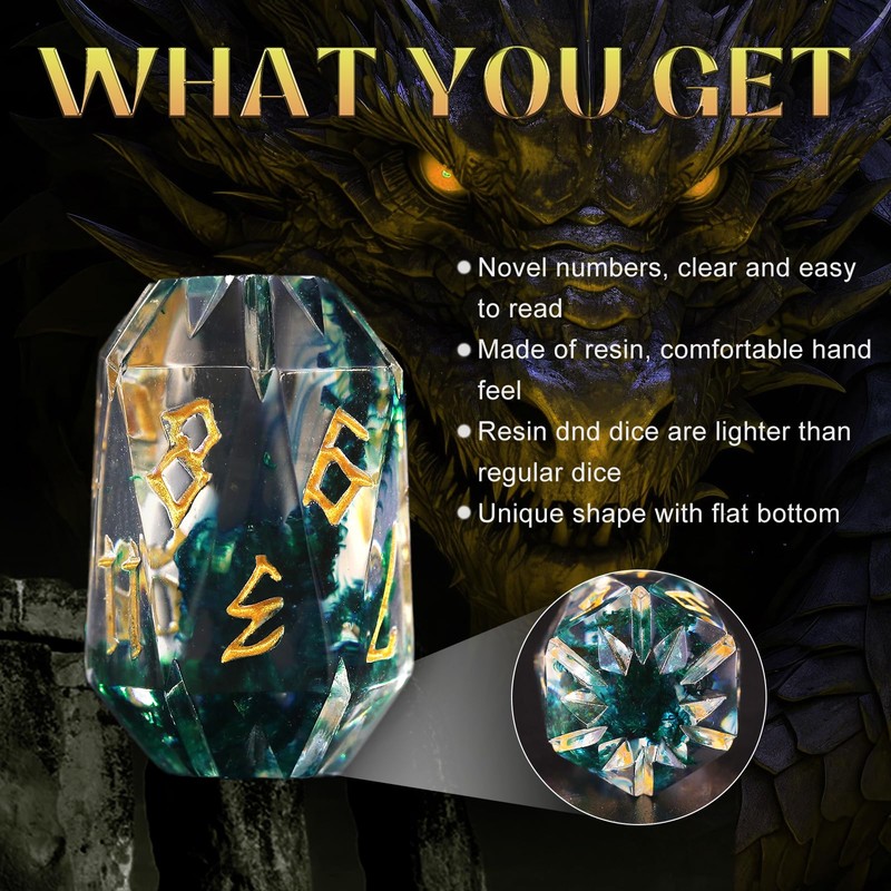 - HANDMADE DICE Each cube in this set is a handmade resin artwork, carefully hand sanded and polished.