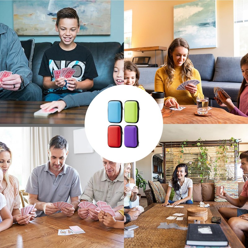 • Box contents: you will receive 4 playing card storage boxes (one in red, green, blue and purple) measuring 11.5 cm x 7.5 cm. They are small and handy and are ideal for handbags, laptop bags and travel bags. Whether for taking with you or storing small accessories - the waterproof card game box is the best choice.