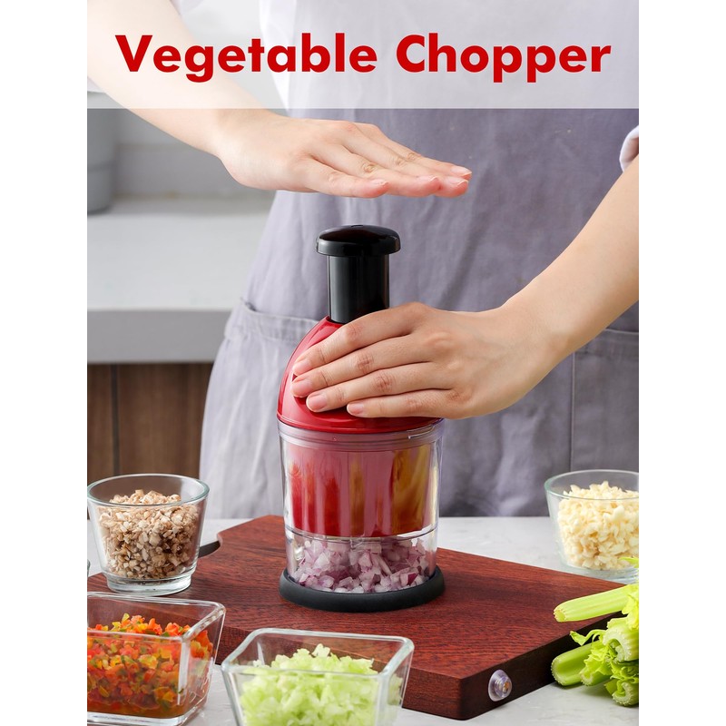 Food Chopper, Hand Chopper Dicer Easy to Clean, Manual Slap Vegetable Cutter Onion Dicer, Garlic Mincer for Onion, Nut, Tomato, Pepper, Celery, etc, Red