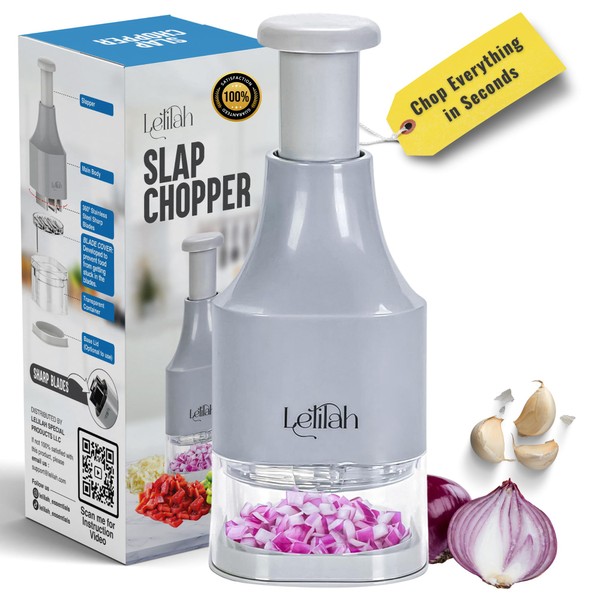 - 👍 【SIMPLE and EASY TO USE】 - Experience quick and effortless chopping with our User-Friendly Design. Our Slap chopper with container is sturdy and can handle a firm slap without breaking. Simply slice your veggies or fruits to fit the container, and the more pressure you apply, the finer the chop. The Chopper is incredibly EASY and SIMPLE to USE. Very convenient!