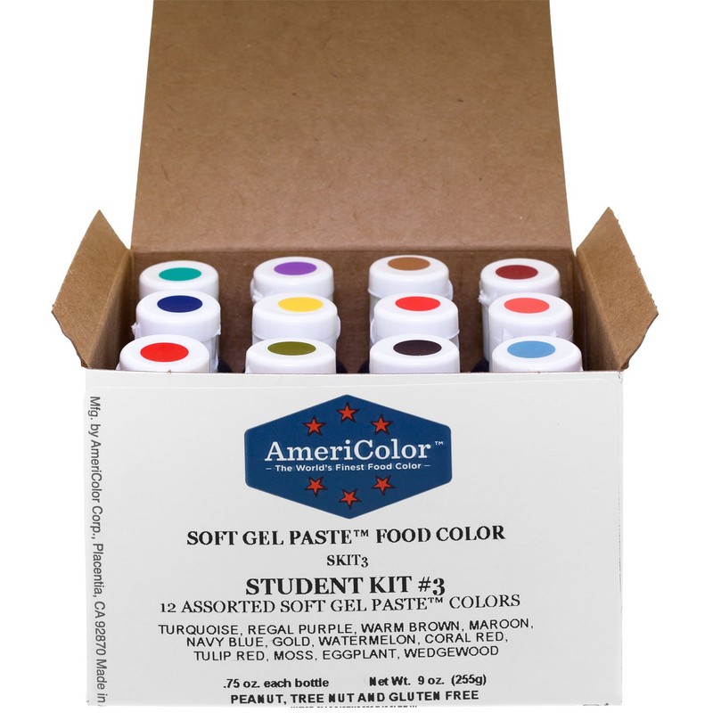 Food Coloring AmeriColor Student - Kit 3 12 .75 Ounce Bottles Soft Gel Paste Colors