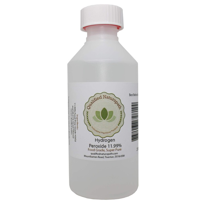 Food Grade Hydrogen Peroxide - 12% (11.99%) - 1100ml | Pure H2O2 (H-O-O-H) in HDPE Bottle *Our Food Grade Hydrogen Peroxide is pure, unstabilized, and free from additives and preservatives* Hydrogen Peroxide (chemical formula H2O2) is considered the safest, all-natural effective sanitiser, and is the only germicidal agent composed only of oxygen and hydrogen – two hydrogen atoms and two oxygen atoms with the structural formula H-O-O-H. It is essentially water with an extra oxygen molecule! When Hydrogen Peroxide reacts with organic material, it breaks down into oxygen and water, and the extra oxygen molecule causes a rapid release of oxygen, and this is what allows the disinfectant and deodorant actions of H2O2 to occur. Hydrogen Peroxide can be used for personal care or for use around the home. H2O2 is a clear liquid that is slightly more viscous than water, and is used as a dilute solution of 3%–12% Hydrogen Peroxide in steam distilled water. Use as a disinfectant, bleaching agent and sanitizer for cleaning around the home – Hydrogen Peroxide is antimicrobial and kills most bacteria, viruses and mould. It can also be used to remove stains and odours Suitable for personal care Use as a disinfectant for personal care products such as mouthguards and toothbrushes Weak solutions can be used to wash vegetables before use Weak solutions can be used on household plants or in the garden Do not mix with other substances or chemicals. Store in a dark, cool, dry, well-ventilated area with the bottle tightly sealed and with the label showing. Keep the bottle in the plastic bag provided to avoid leakages. Exposure to light and heat can cause hydrogen peroxide to break down into water and oxygen gas, which reduces its effectivenes. Keep away from flammable materials and other chemicals. Keep out of reach of children and pets. Avoid contact with eyes. Hydrogen peroxide must be supplied in a plastic (HDPE) bottle as if a glass bottle is dropped and smashed injury is likely