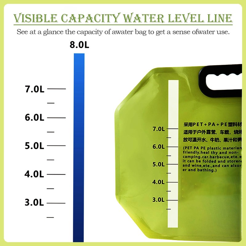 - Thoughtful details: With a comfortable, wide grip and reinforced handle, this large outdoor water container is designed for easy carrying and visual monitoring of water levels. The dust cover at the water outlet is securely sealed to prevent leaks. Designed for portability, it folds flat and can be easily stored in a pocket.