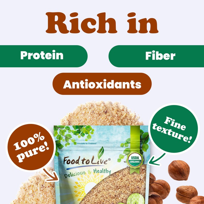 - ✔️ ORGANIC & NON-GMO: Hazelnut Flour by Food to Live is Organic, Non-GMO, 100% Raw, Vegan, and free of additives.