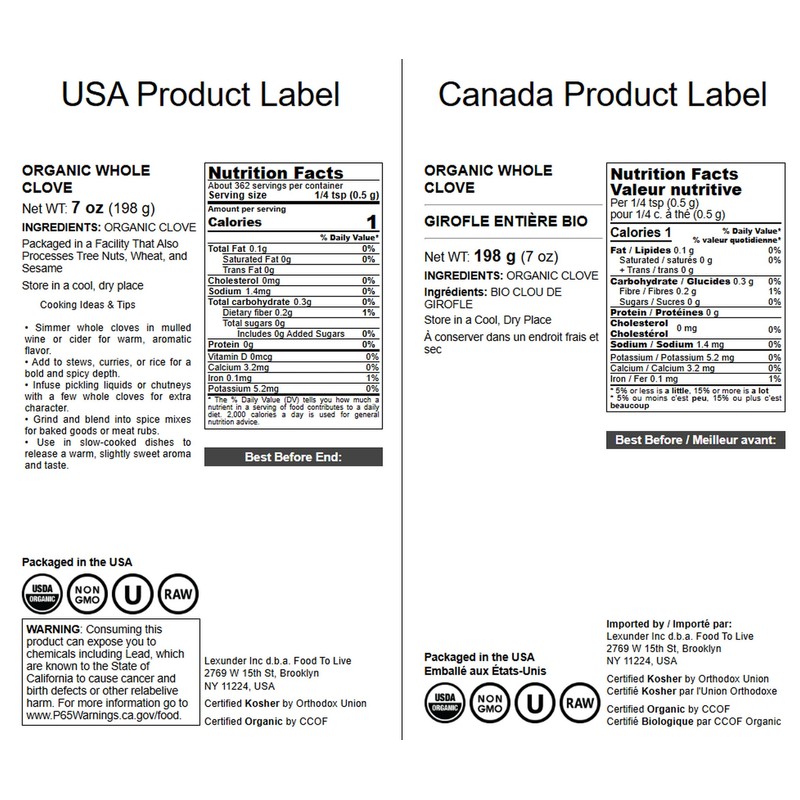 Food to Live Organic Whole Clove, 7 Ounces – Aromatic and Flavorful Dried Spice for Cooking, Baking, Tea, and Home Remedies. Non-GMO, Vegan, Kosher, Bulk