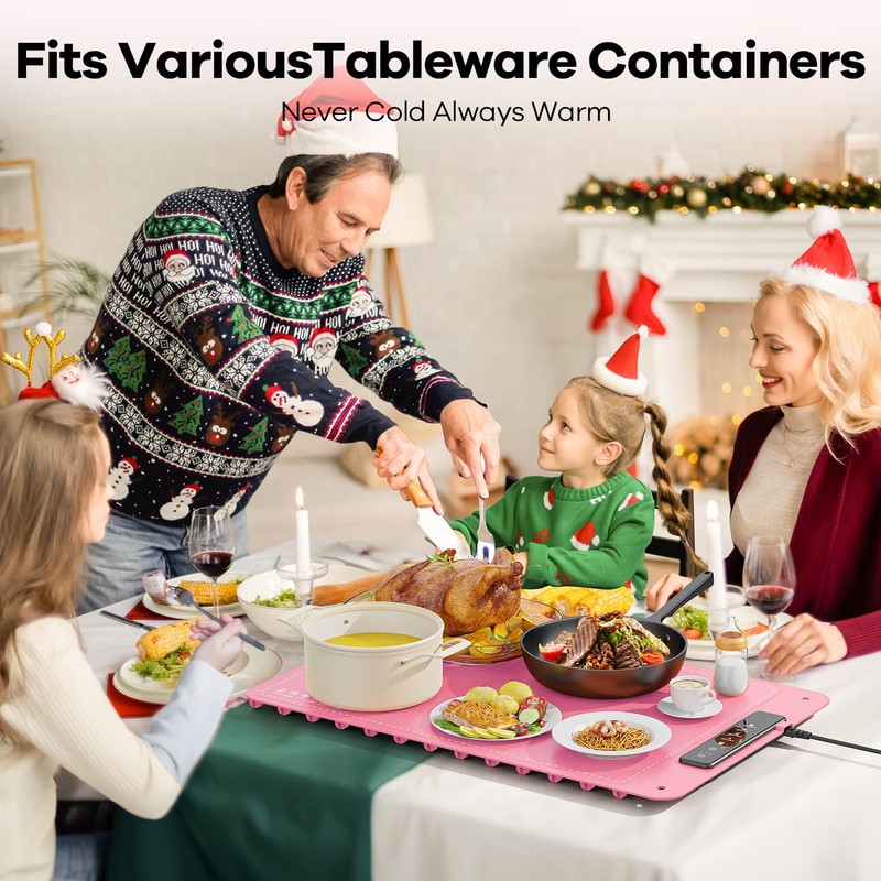 Food Warming Mat for Buffet,Electric Warming Tray with 4 Temperatures Setings and 1/3/5h Timer,Full Surface Heating Food Warmers for Parties Buffets Holidays Daily Use to Keep Food Warm(Pink)